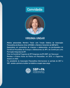 A programação contará com a participação de Virginia Ungar, médica psicanalista, Membro Titular com Função Didática da Associação Psicanalítica de Buenos Aires (APDEBA) e Membro Honorário da SBPdePA.
