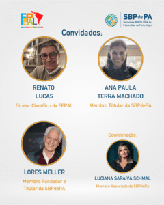 Participam da programação Renato Lucas (Diretor Científico da FEPAL), Ana Paula Terra Machado (Membro Titular da SBPdePA), e Lores Meller, (Membro Fundador e Titular da SBPdePA). Cada convidado trará contribuições que ampliam a leitura teórica e clínica do tema.