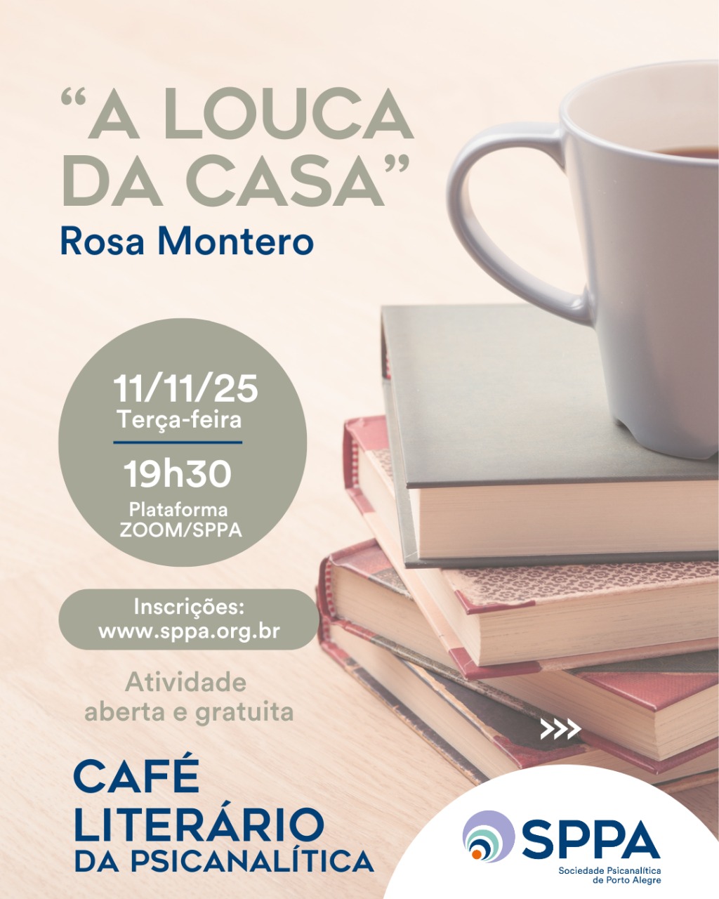 “A louca da casa”, de Rosa Montero, será o tema do Café Literário da Psicanalítica do dia 11 de novembro (terça-feira), às 19h30, na plataforma Zoom/SPPA.