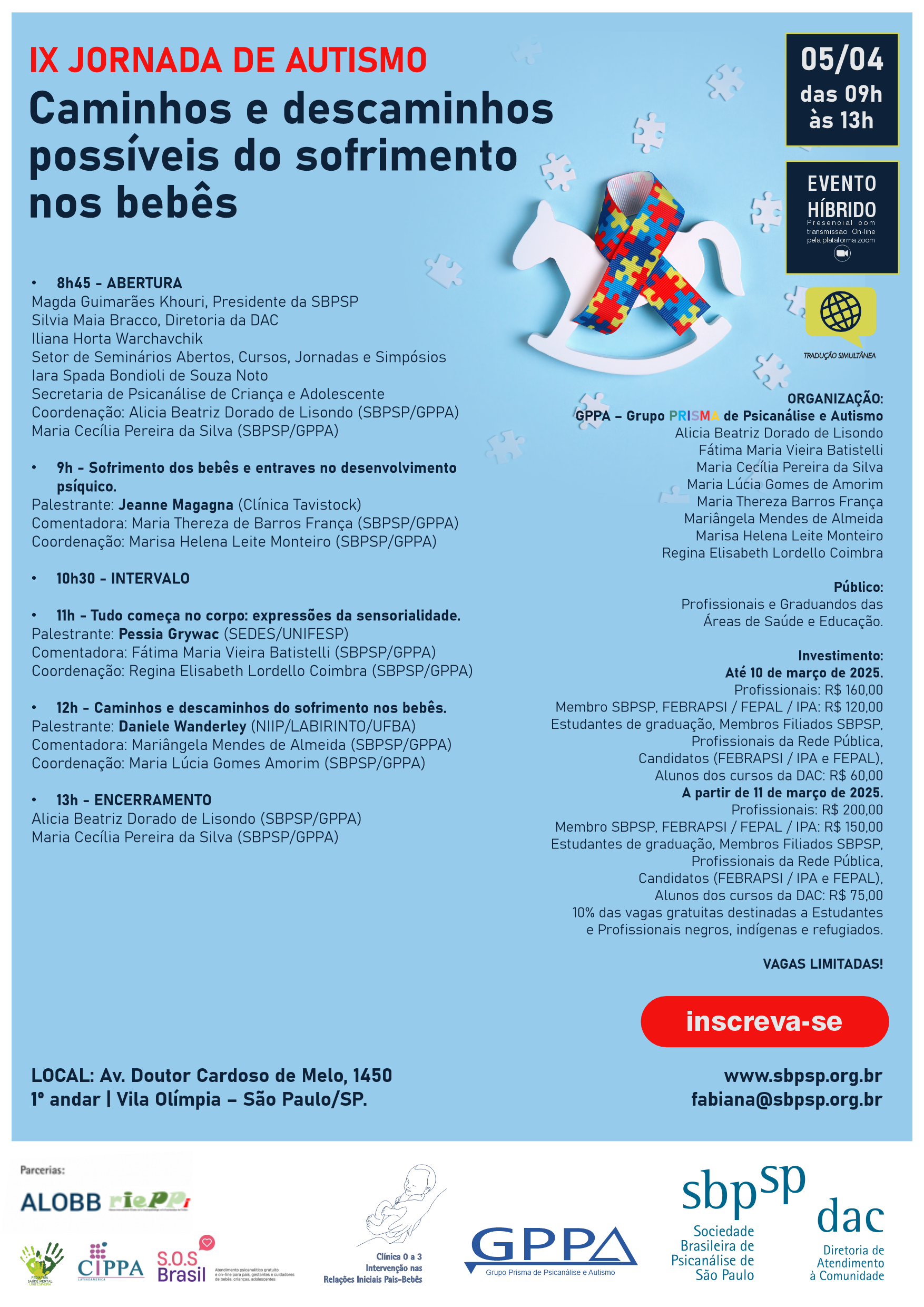 9h – Sofrimento dos bebês e entraves no desenvolvimento psíquico.