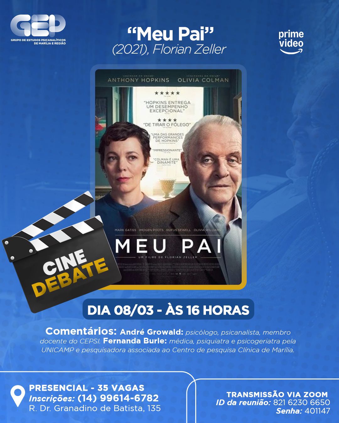 ID da reunião: 821 6230 6650 | Senha: 401147