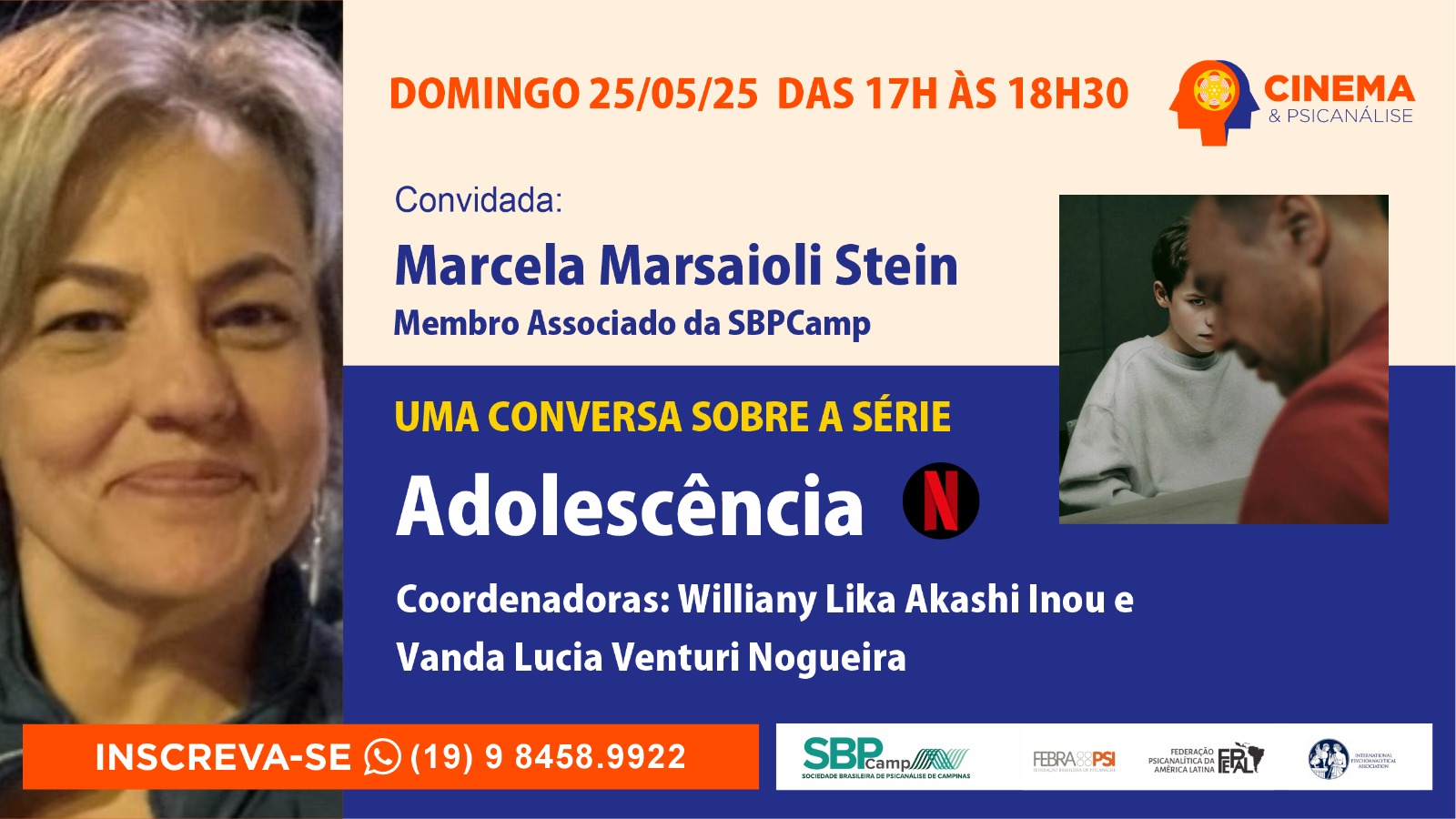 Marcela Marsaioli Stein, Membro associado da SBPCamp, comentará a recente minissérie da Netflix que impactou ao mundo todo: “Adolescência”.