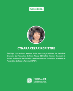 O curso será ministrado por Cynara Cezar Kopittke, membro titular da SBPdePA, cuja experiência clínica e teórica contribui para a qualificação do debate contemporâneo sobre a Psicanálise Vincular.
