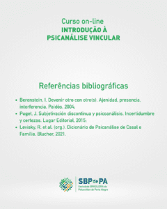 Nos dias 12, 19 e 26 de fevereiro, das 12h15 às 13h30, a Sociedade Brasileira de Psicanálise de Porto Alegre realiza o curso de férias 2026 “Introdução à Psicanálise Vincular”, em formato on-line, sob coordenação de Susana Salete R. Chinazzo. A atividade integra a programação científica da instituição, por meio da Diretoria da Comunidade e Cultura.
