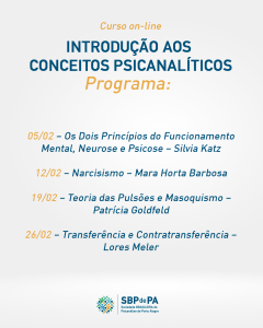 A Sociedade Brasileira de Psicanálise de Porto Alegre (SBPdePA), por meio da Diretoria de Comunidade e Cultura, convida para o curso “A essência da psicanálise “, uma oportunidade online para explorar os fundamentos essenciais da Psicanálise em suas férias.