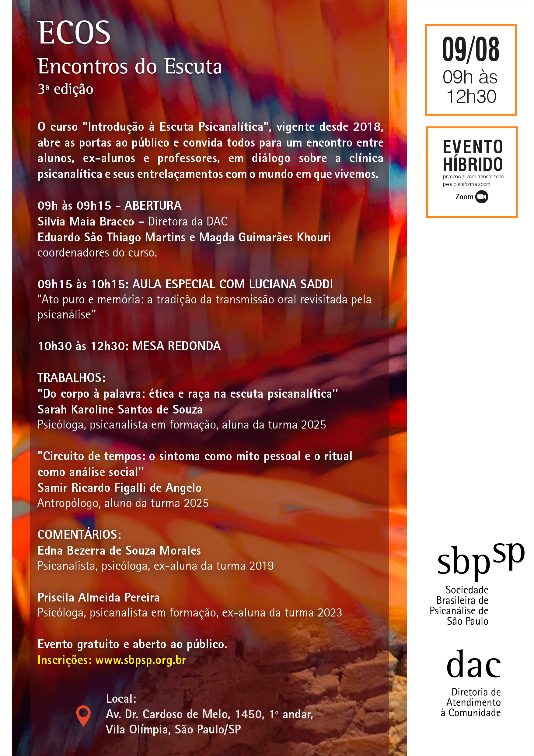Evento gratuito e aberto ao público.