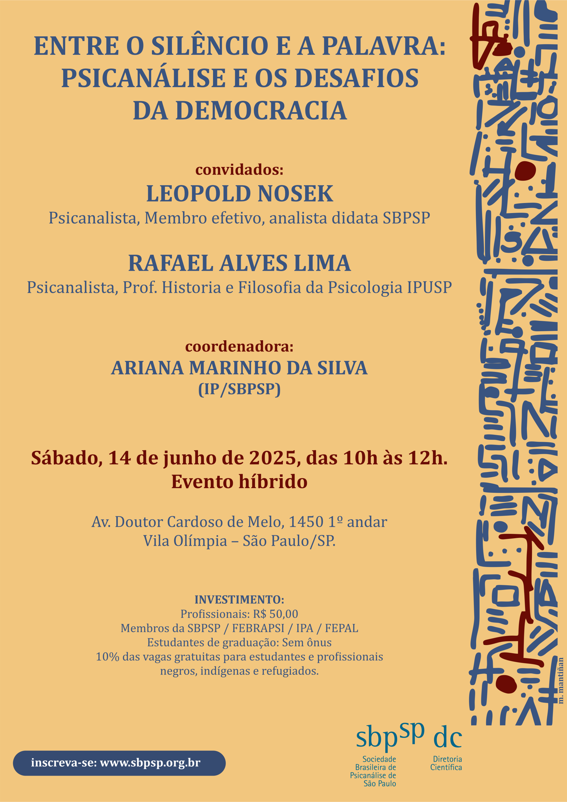 Membros da SBPSP / FEBRAPSI / IPA / FEPAL / Estudantes de graduação: Sem ônus