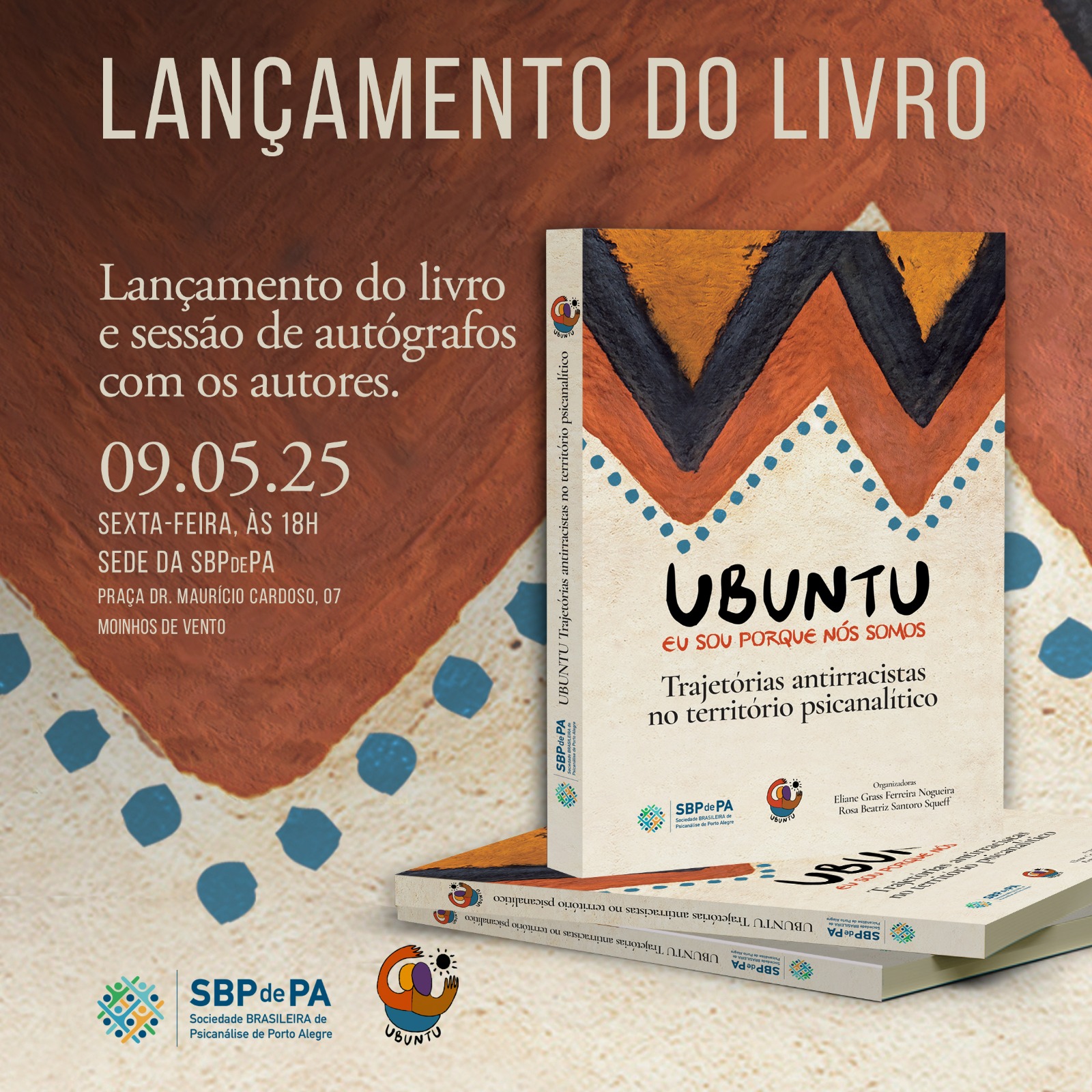 A SBPdePA, por meio da Comissão Ubuntu, convida a comunidade para um evento especial: o lançamento do livro “Ubuntu – Eu sou porque nós somos: Trajetórias Antirracistas no Território Psicanalítico”.