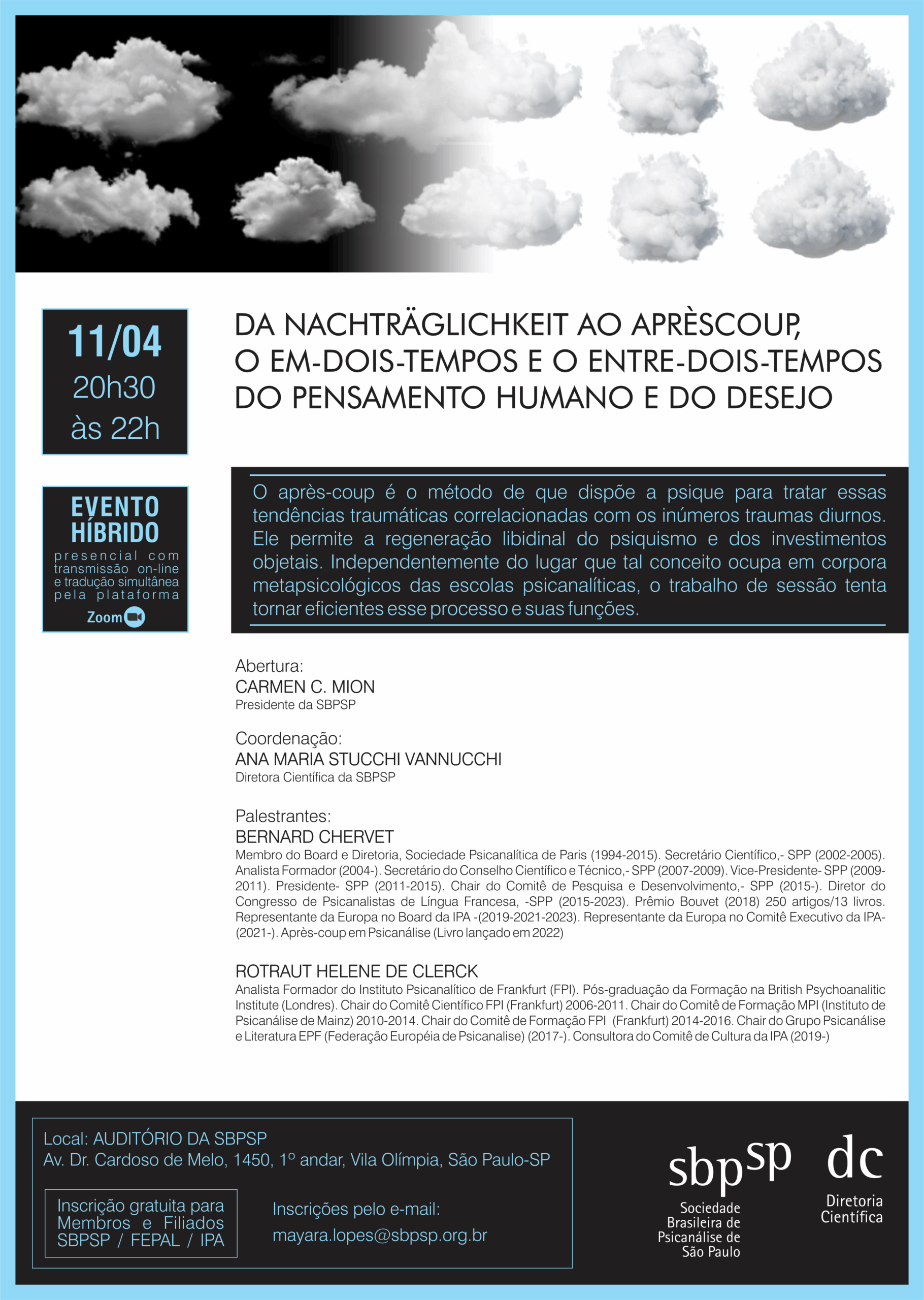 Inscrição gratuita para Membros e Filiados SBPSP / FEPAL / IPA