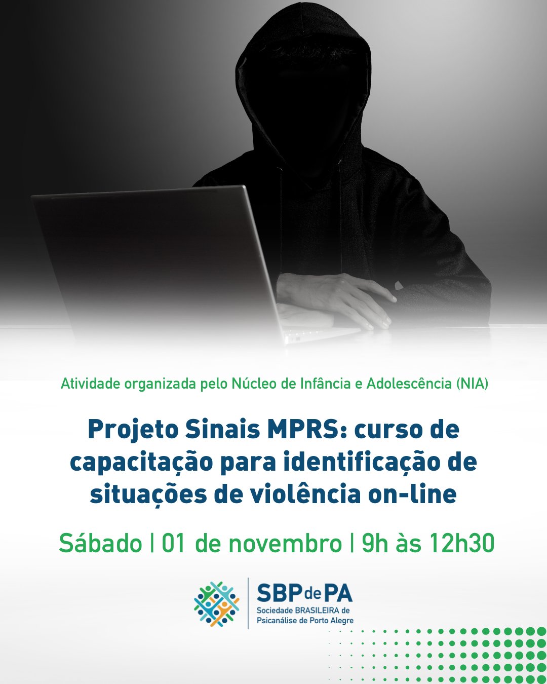No sábado 1º de novembro de 2025, das 9h às 12h30, a Sociedade Brasileira de Psicanálise de Porto Alegre (SBPdePA) sediará a atividade presencial “Projeto Sinais: curso de capacitação para identificação de situações de violência online do MPRS”, promovido pelo Núcleo de Infância e Adolescência (NIA), com coordenação de Heloisa Zimmermann.