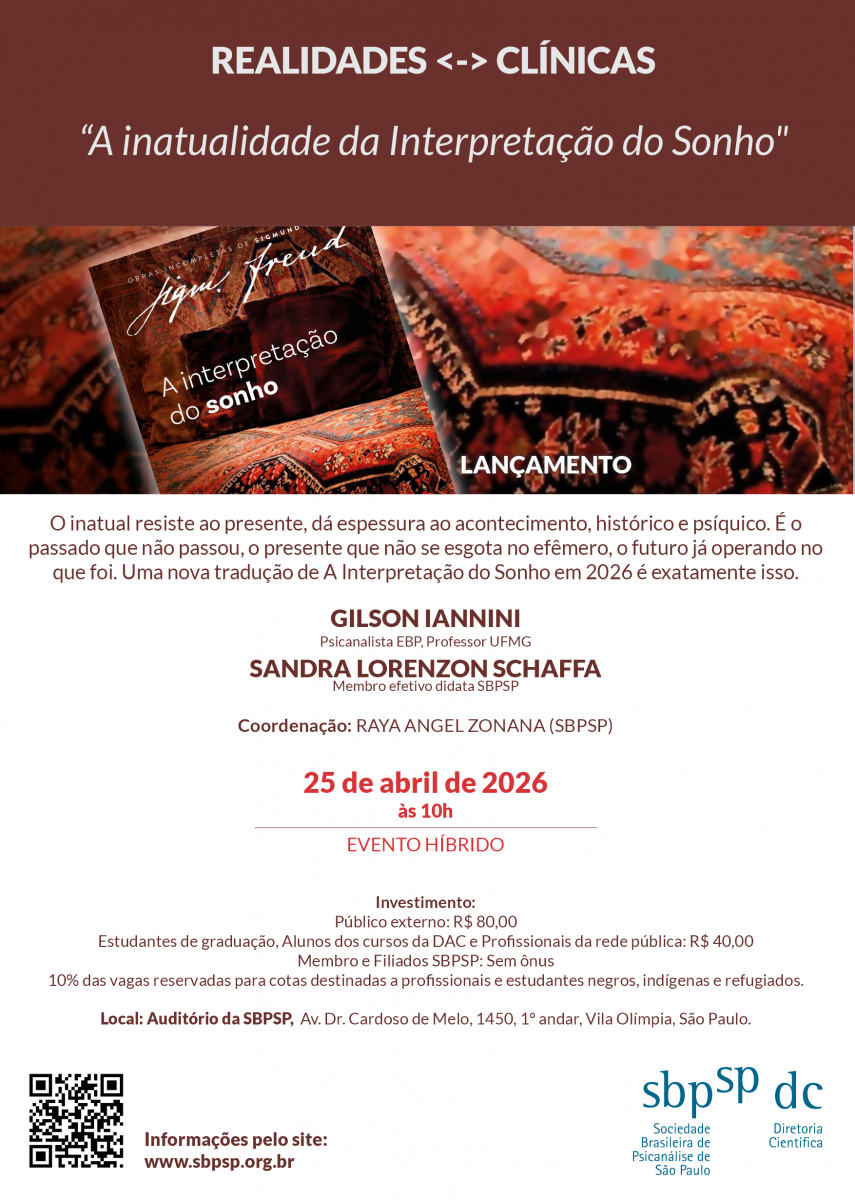O inatual resiste ao presente, dá espessura ao acontecimento, histórico e psíquico. É o passado que não passou, o presente que não se esgota no efêmero, o futuro já operando no que foi. Uma nova tradução de A Interpretação do Sonho em 2026 é exatamente isso.