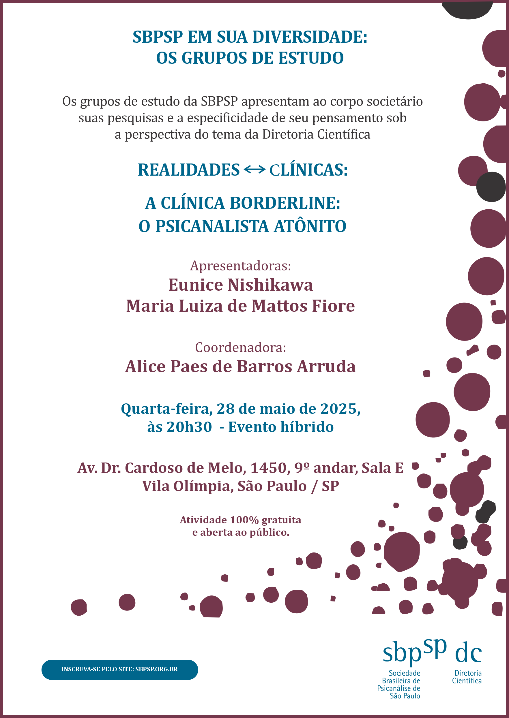 Os grupos de estudo da SBPSP apresentam ao corpo societário suas pesquisas e a especificidade de seu pensamento sob a perspectiva do tema da Diretoria Científica