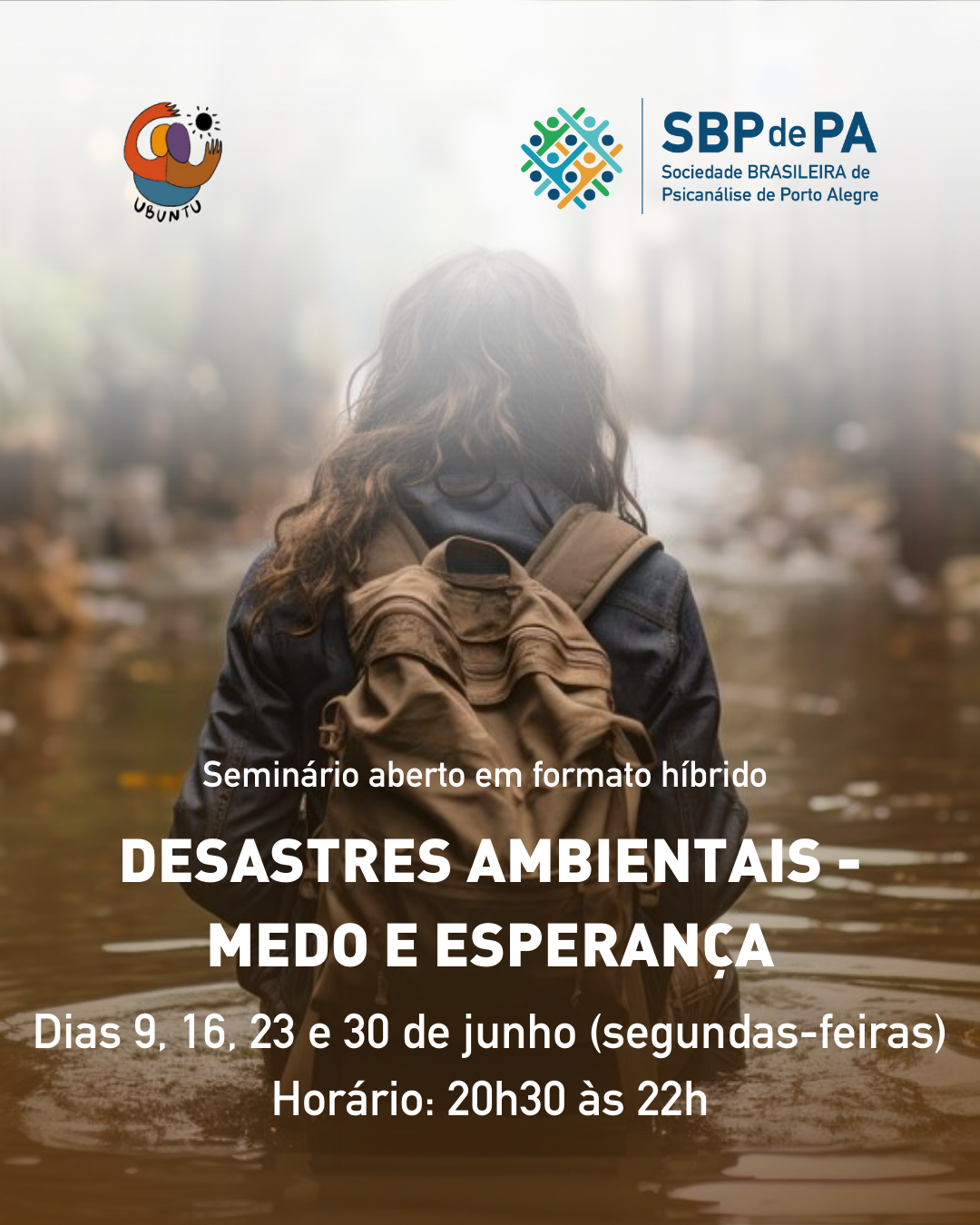 A Comissão Ubuntu da Sociedade Brasileira de Psicanálise de Porto Alegre (SBPdePA) promove o seminário aberto “Desastres ambientais – medo e esperança”, um espaço de diálogo interdisciplinar sobre os impactos psíquicos e sociais das mudanças climáticas e desastres ambientais.