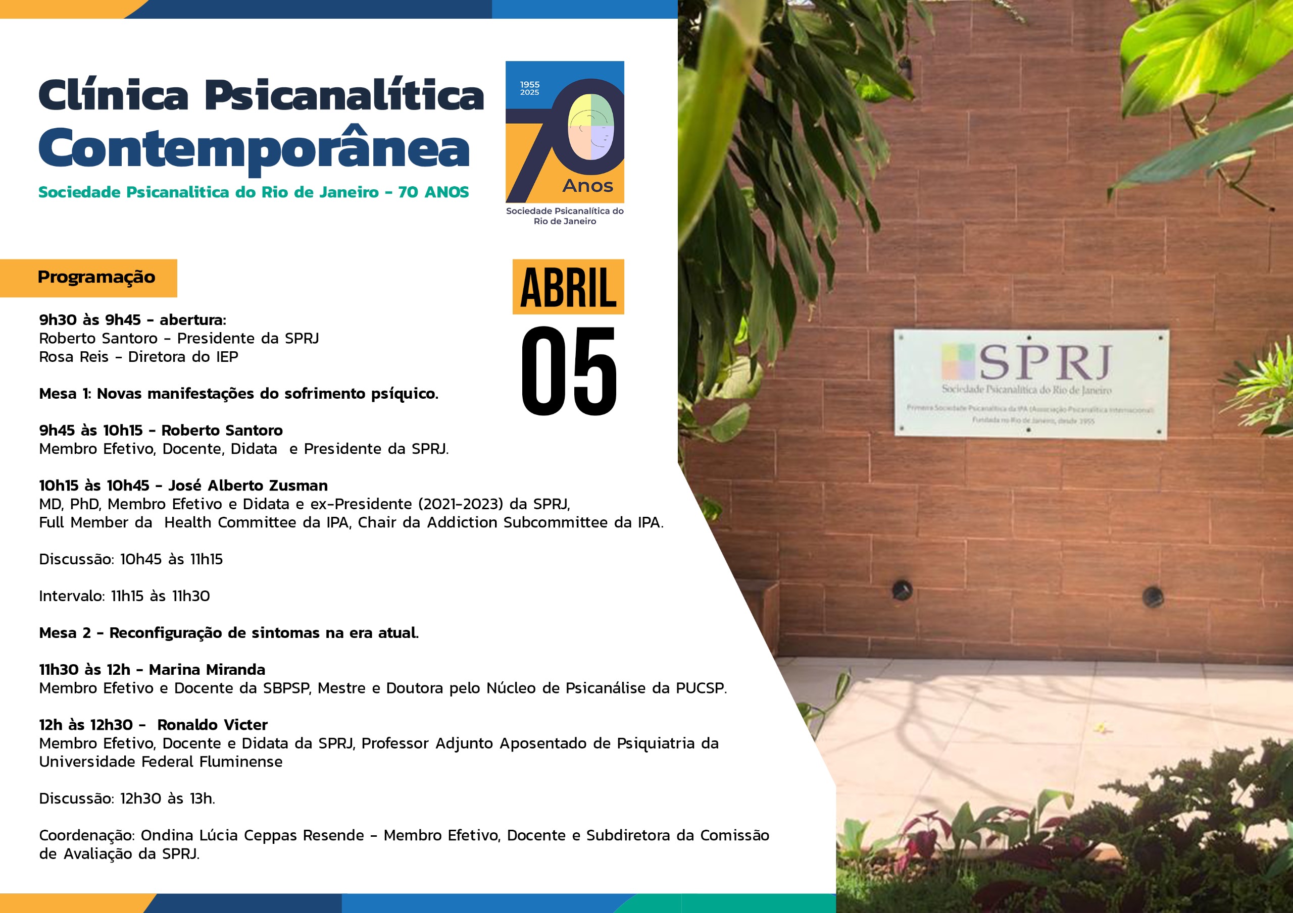 SPRJ – Clínica Psicanalítica Contemporânea – Sociedade Psicanalítica do Rio de Janeiro – 70 anos