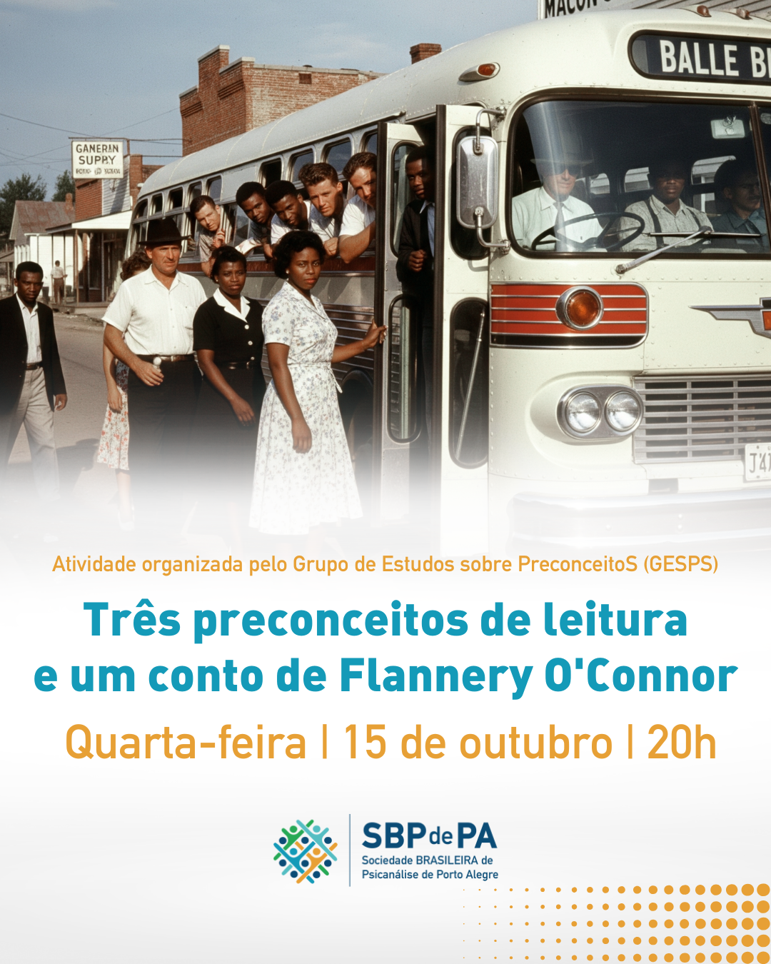 O Grupo de Estudos sobre PreconceitoS (GESPS), da SBPdePA, tem a satisfação de convidar para uma atividade diferente e criativa, que aproxima estudo psicanalítico e literatura em torno dos temas da intolerância e da discriminação.