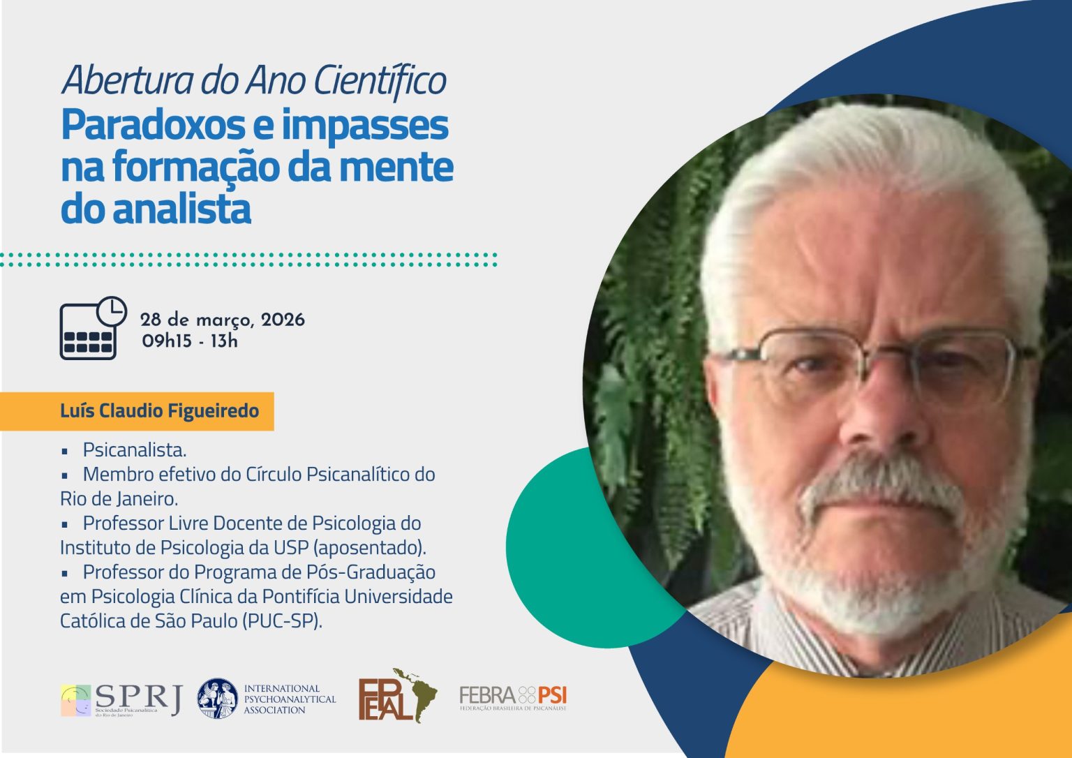 Abertura do Ano Científico: Paradoxos e impasses na formação da mente do analista Palestrante: Luís Cláudio Figueiredo Dia 28 de março de 2026 Horário: 9h15 Evento híbrido