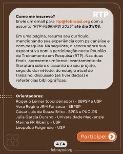 #RTPFebrapsi2025 #FEBRAPSI #SBPSP #PesquisaEmPsicanálise #Psicanálise #CiênciaPsicanalítica #Formação #EventosFebrapsi