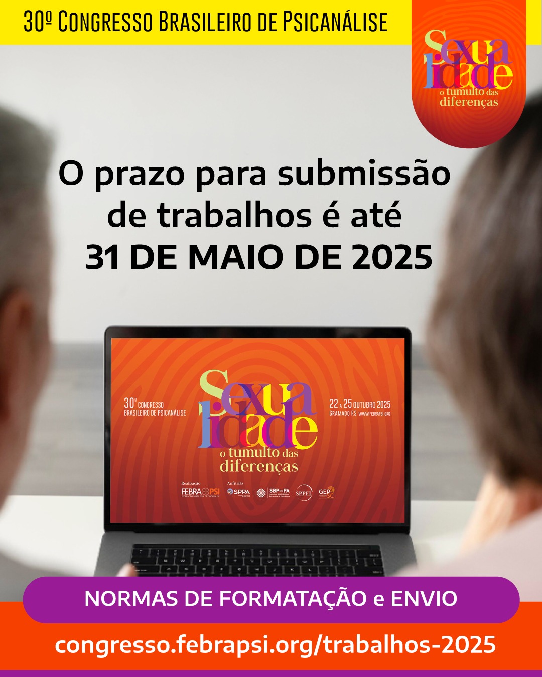 ⏰Este é o momento de você contribuir e participar efetivamente do 30º Congresso Brasileiro de Psicanálise.