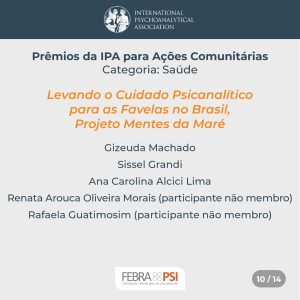Aplaudimos a paixão, a excelência e o compromisso desses profissionais que, com ética e sensibilidade, ajudam a transformar a escuta psicanalítica em uma prática viva e essencial para a sociedade.