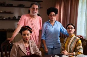 Imagem: foto cedida por Jorge Furtado. Em pé: Jorge Furtado e Yasmin Thayná (Diretores). Sentadas, da esquerda para a direita, as atrizes Gabriela Correa e Sophie Charlotte.