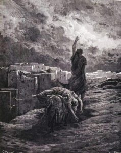 Imagem: Indignado em Gibeá, o levita leva a sua concubina morta. Gravura. Gustave Dore