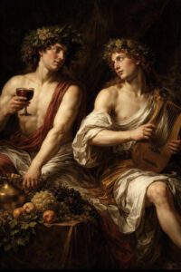 A tradição filosófica já reconhecia a tensão estrutural entre Dioniso e Apolo. A embriaguez coletiva pode tanto revigorar a comunidade quanto dissolver sua capacidade deliberativa.